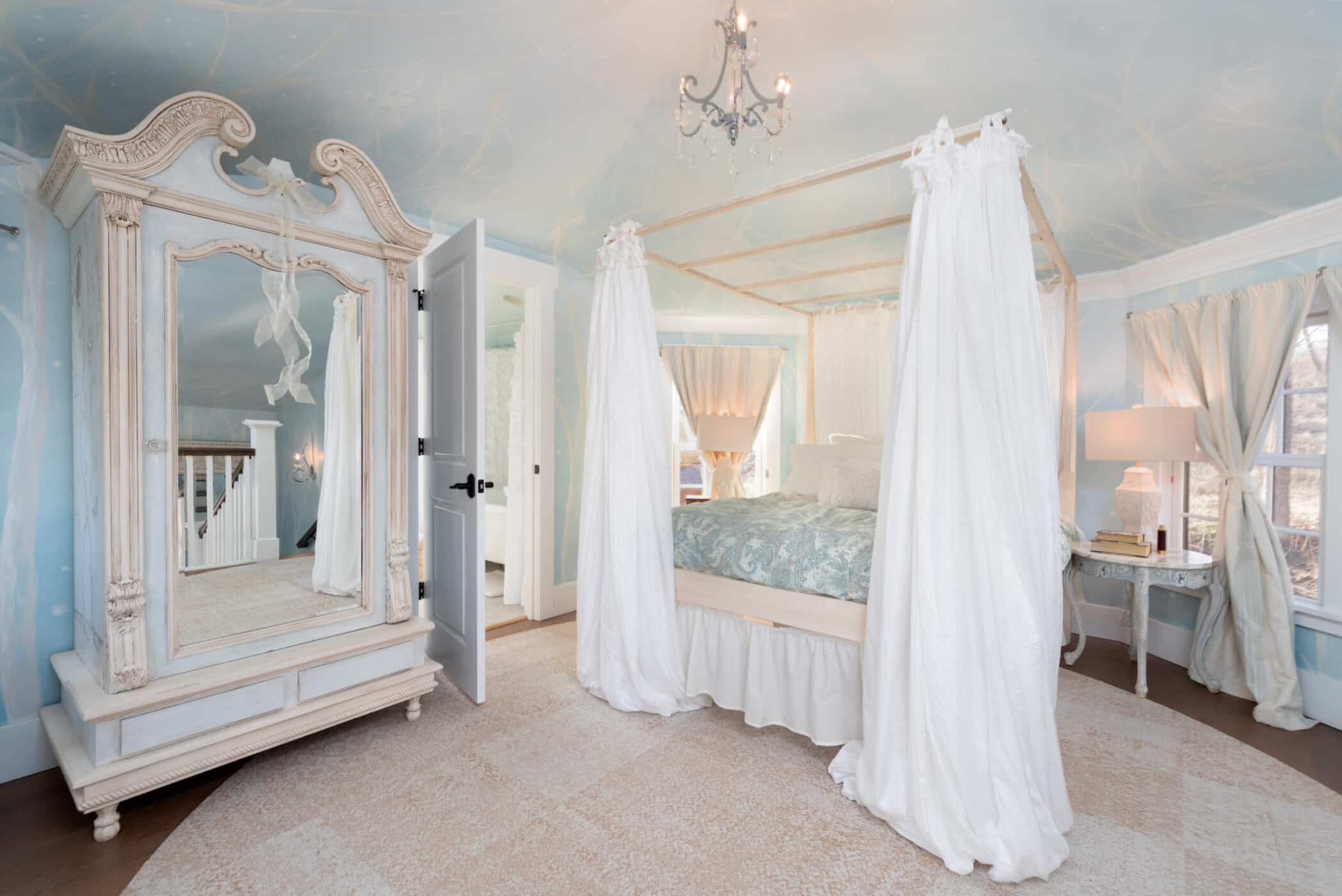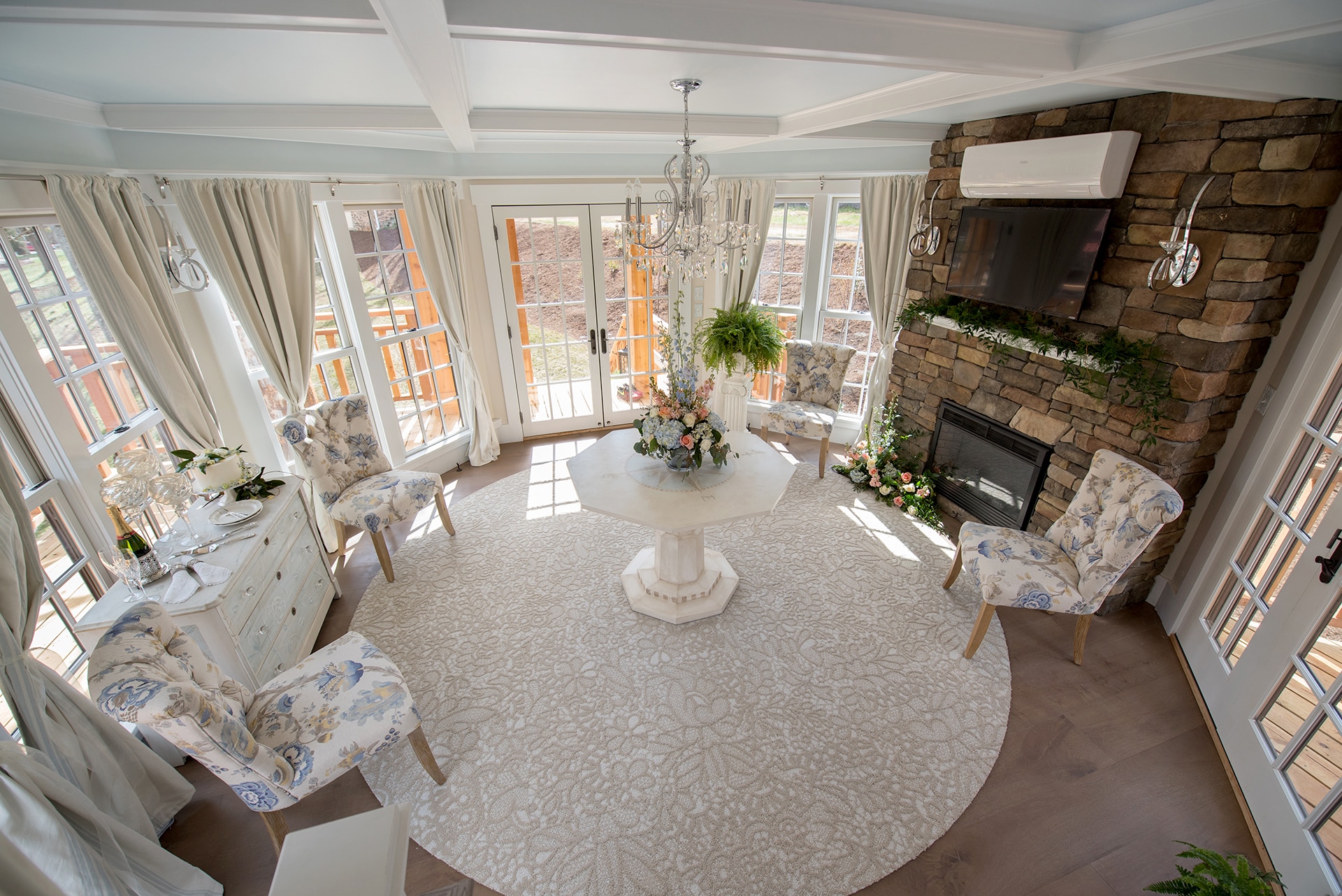 Perfect for romantic getaways, Bella Rose Treehouse overlooks our historic 18th century event venue, which features a working watermill. Make your own special moments and take in the beauty of nature like never before while still enjoying comfortable modern amenities. Our beautiful treehouse was built by Pete Nelson of Treehouse Masters, Animal Planet’s original television program!